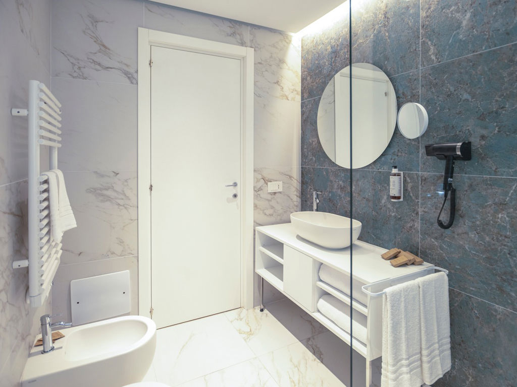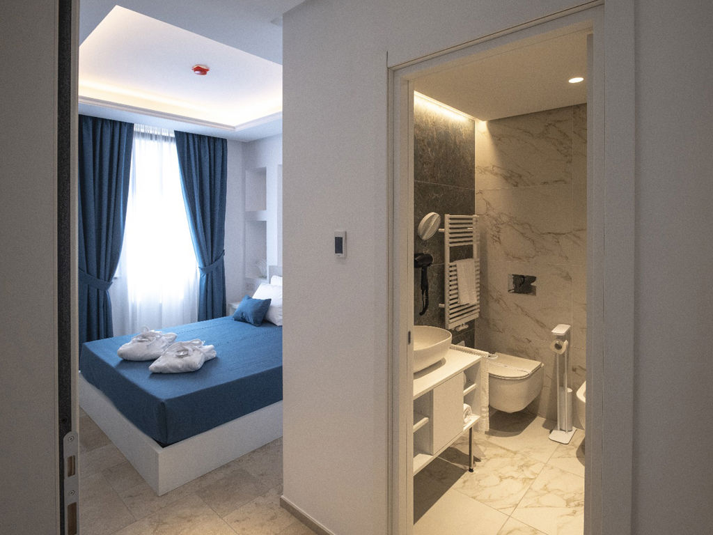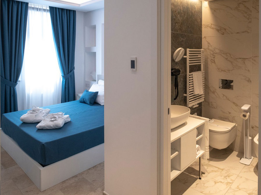 Camera luminosa ed accogliente finemente arredata, dispone di bagno con doccia walk in.