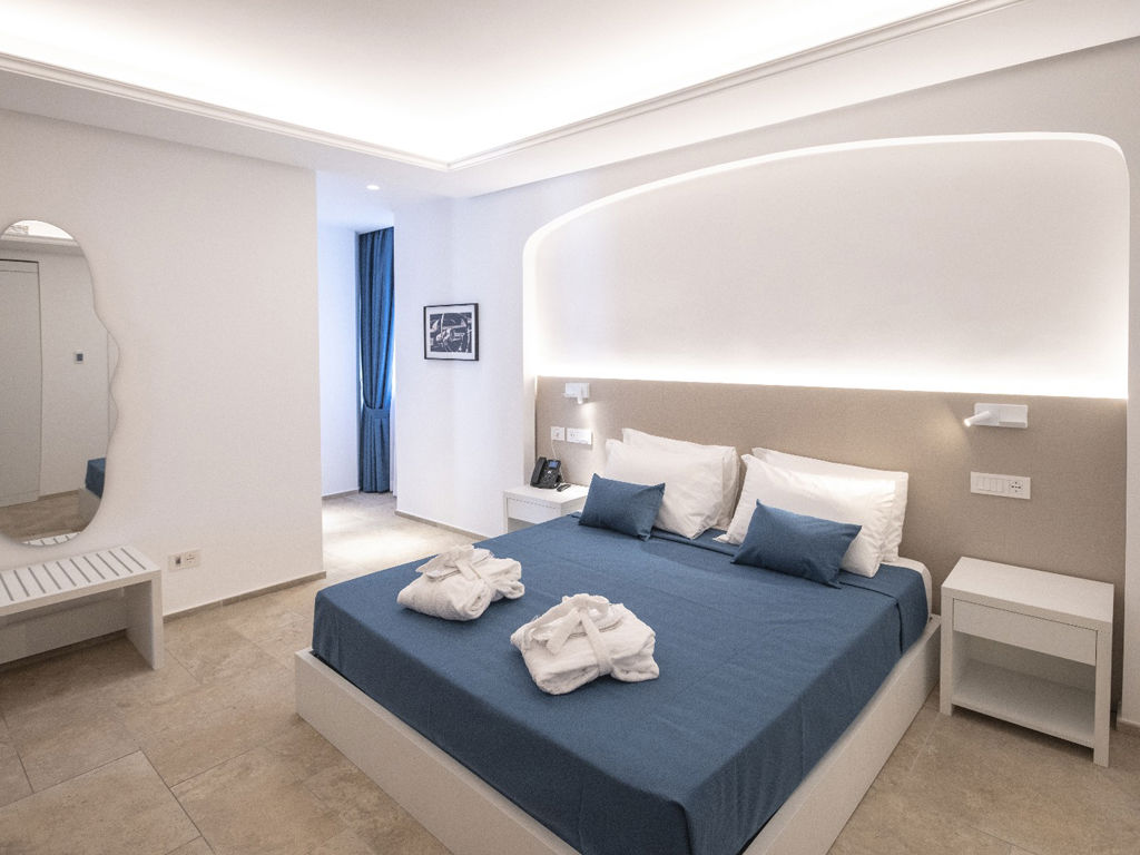 Dalla finestra i rossi tetti del borgo e la costiera in lontananza fanno da cornice al nostro splendido mare. Arredata con raffinatezza, può accogliere un terzo letto ed una culla per bambini di età compresa tra 0 e 3 anni, a seconda delle esigenze.